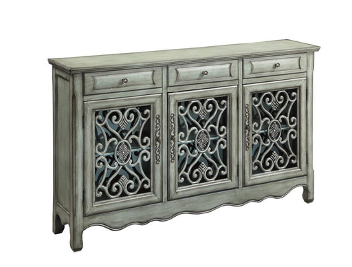 This traditional accent cabinet brings vintage elegance with a romantic twist. Finished in antiqued green, it features intricate bronze hardware, s...