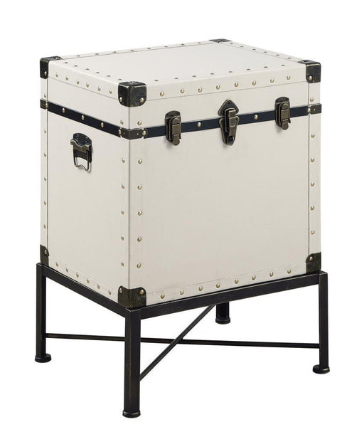 Add vintage-inspired charm to your space with this versatile side table and storage trunk combo. Upholstered in a smooth white leatherette, it feat...