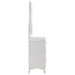 Sophisticated and dimensional, this six-drawer dresser and mirror set makes a bold statement in a high-gloss white finish. The dresser features geometric drawer fronts with fine ribbed texture forming inverted V patterns, paired with polished chrome U-shaped pulls. Black felt lines the top drawers for a touch of refinement, while 45mm metal extension glides ensure smooth operation. Above, the matching mirror glows with integrated white LED trim for ambient lighting and crisp contrast. Key Features: • Six-drawer dresser in white high gloss finish with sculpted geometric drawer fronts • Top drawers are fully lined in black felt to protect valuables and add a refined touch • Equipped with 45mm metal extension glides for smooth and quiet drawer operation • Polished chrome U-shaped pulls accent the textured surface with modern shine • Framed mirror includes integrated white LED trim for bright, ambient lighting • Crafted from engineered wood for a sleek and durable finish